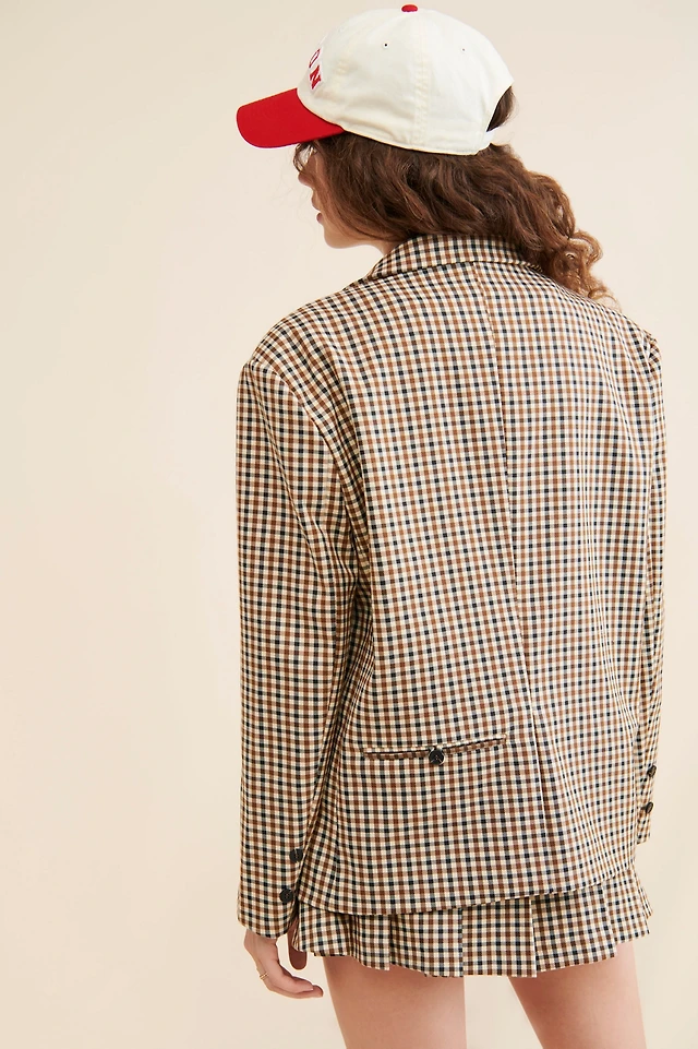 Moon River Brown Plaid Oversized Blazer