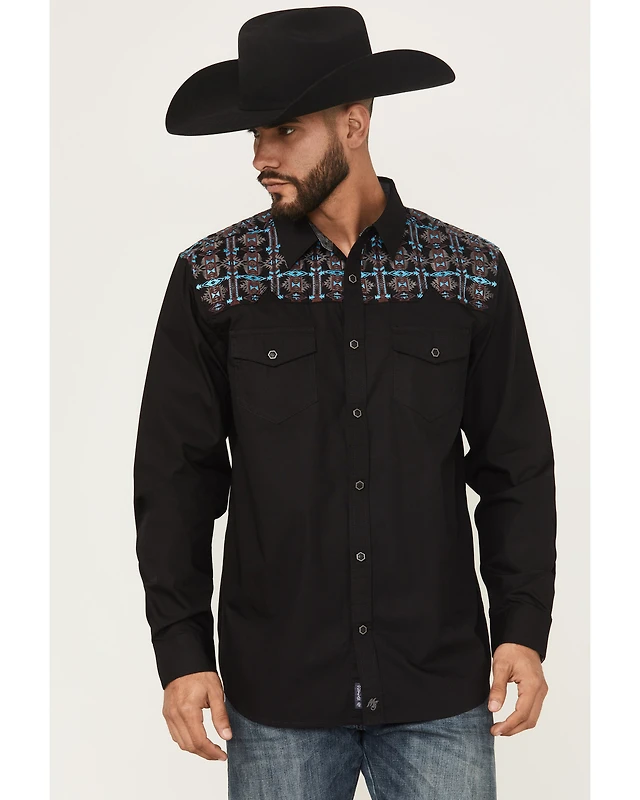 Moonshine Spirit Men's Embroidered Long Sleeve Snap Western Shirt
