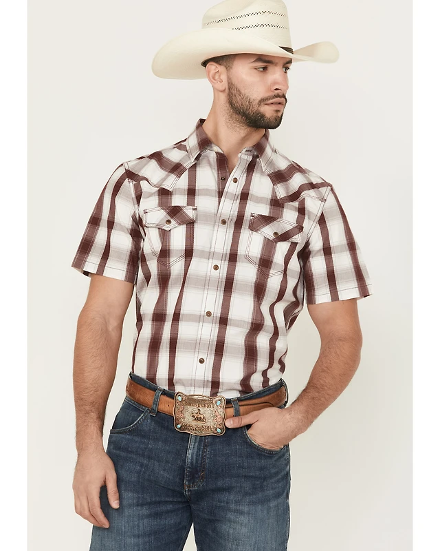 Moonshine Spirit Men's Strummin Plaid Print Short Sleeve Western Snap Shirt