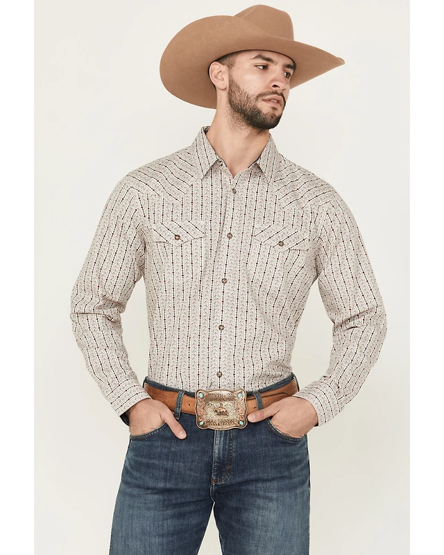 Moonshine Spirit Men's Striped Print Long Sleeve Snap Western Shirt