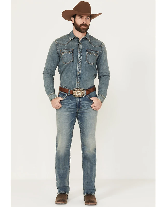 Moonshine Spirit Men's Corral Dust Wash Decker Slim Straight Stretch Denim Jeans