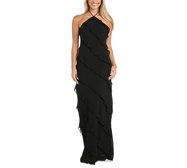 Morgan & Company Juniors' Tiered Ruffled Chiffon Gown
