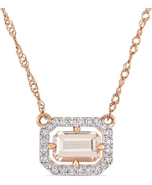 Morganite (3/5 ct. t.w.) & Diamond (1/10 ct. t.w.) Halo 17" Necklace in 14k Rose Gold