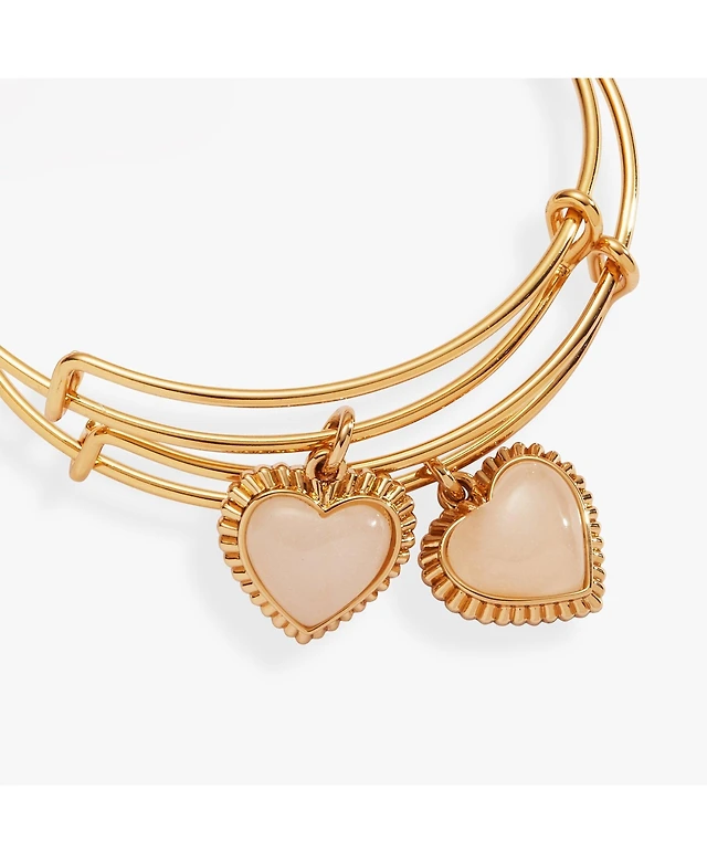 Adornia 14K Gold Plated Stretch Heart Ball Bracelets with Imitation Mother of Pearl, 2 Pieces
