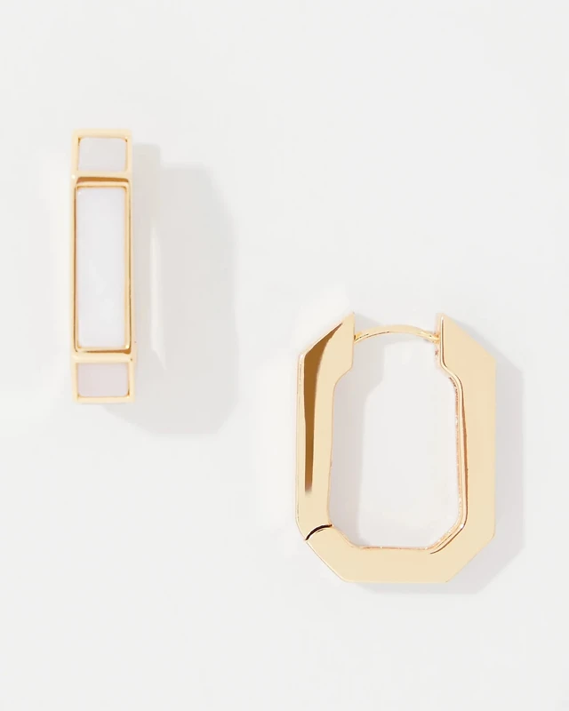 Anne Klein Mother-of-Pearl Charm Huggie Hoop Earrings