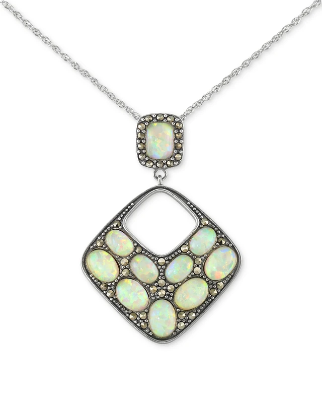 Mother of Pearl & Marcasite Square 18" Pendant Necklace in Sterling Silver
