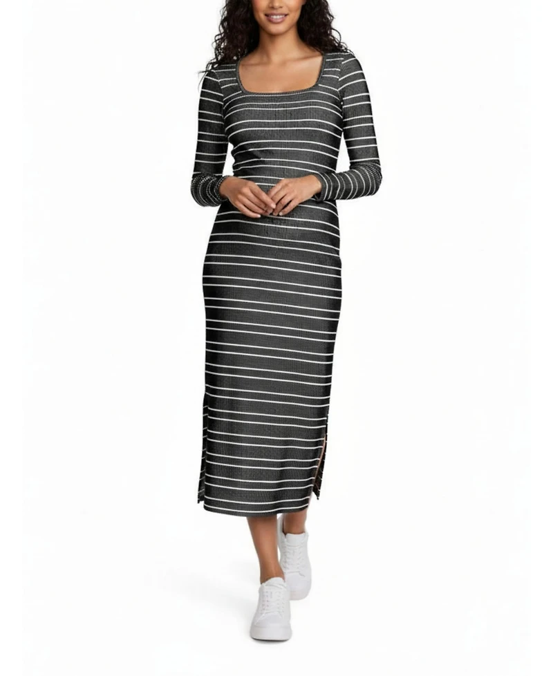 Motherhood Maternity Square Neck Rib Knit Long Sleeve Bodycon Maxi Dress