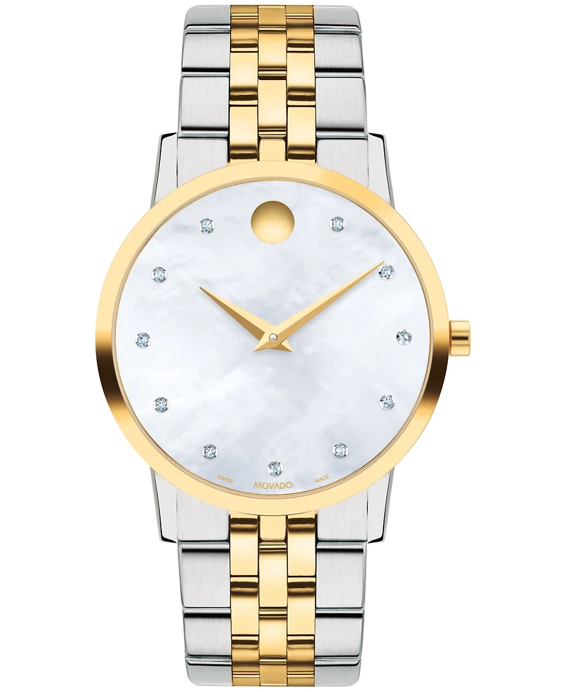 Movado Women's Swiss Museum Classic Diamond (1/20 ct. t.w.) Two Tone Stainless Steel Bracelet Watch 33mm in Bloomington, MN