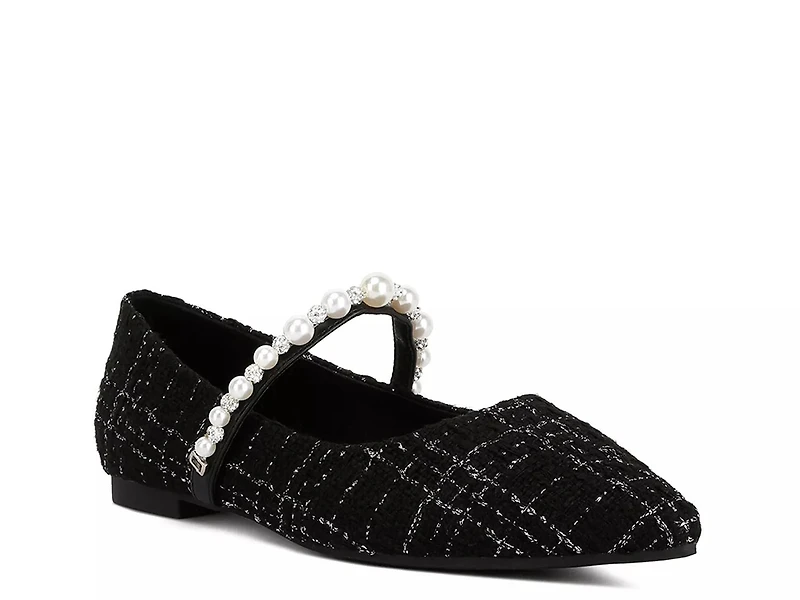 Bring vintage vibes to the forefront in the Mowie flat from London Rag. This pair sports a tweed upper and Mary Jane strap that add charm to your fave look.