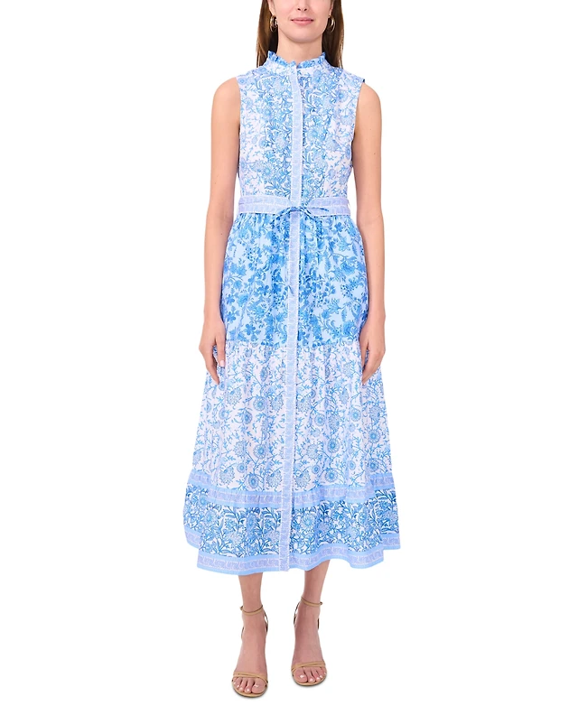 Msk Women's Printed Ruffle-Collar Tiered Maxi Dress