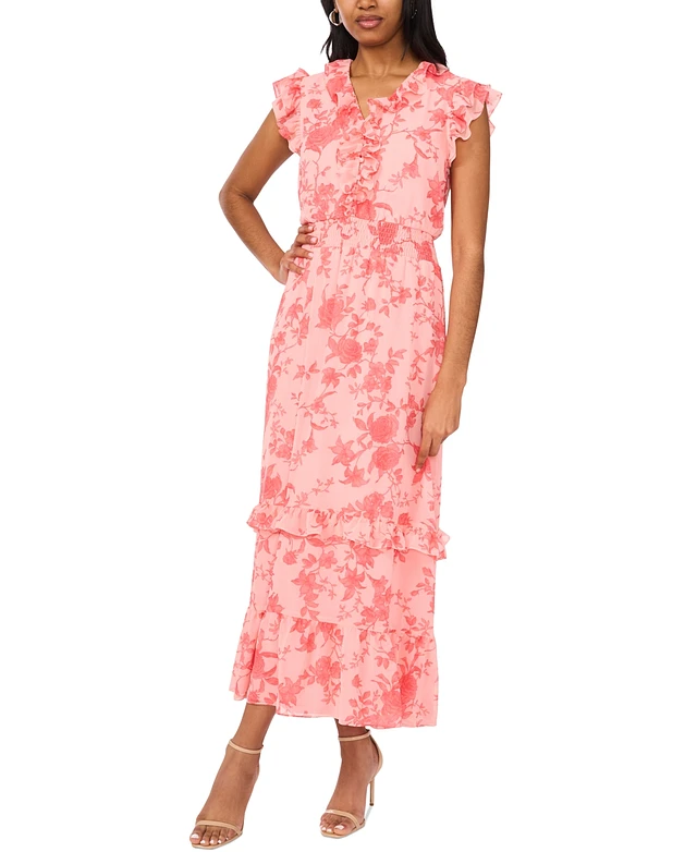 Msk Petite Printed Ruffle-Trim Short-Sleeve Midi Dress