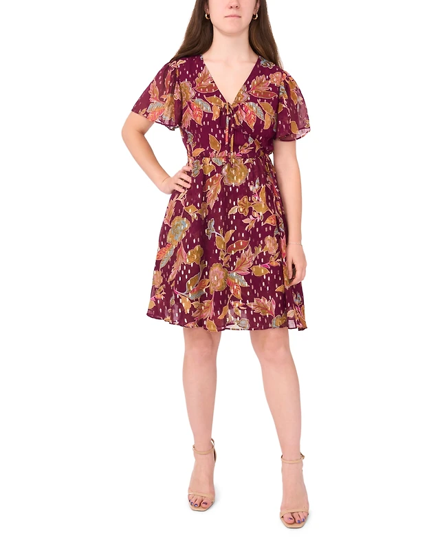 Msk Petite Spread-Collar Short-Sleeve Shift Dress