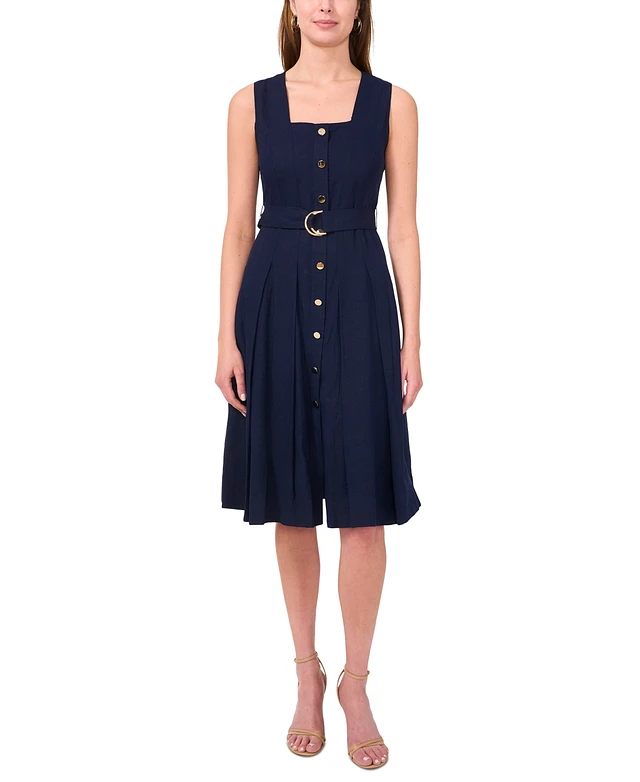 Msk Petite Square-Neck Button-Front Sleeveless Dress