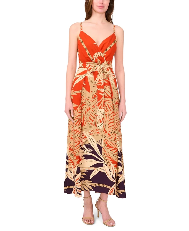Msk Women's Printed-Chiffon Tie-Waist Tiered Maxi Dress