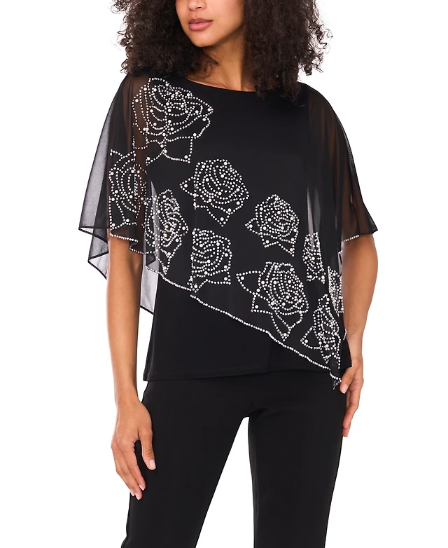 Msk Women's Split Cape Overlay Top