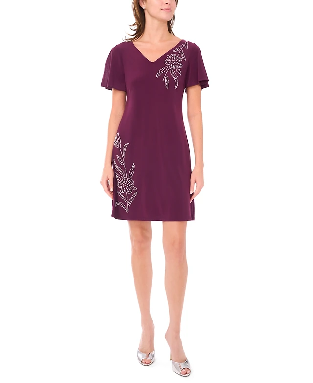Msk Women's Split Sleeve and Floral Faraj Motif Dress