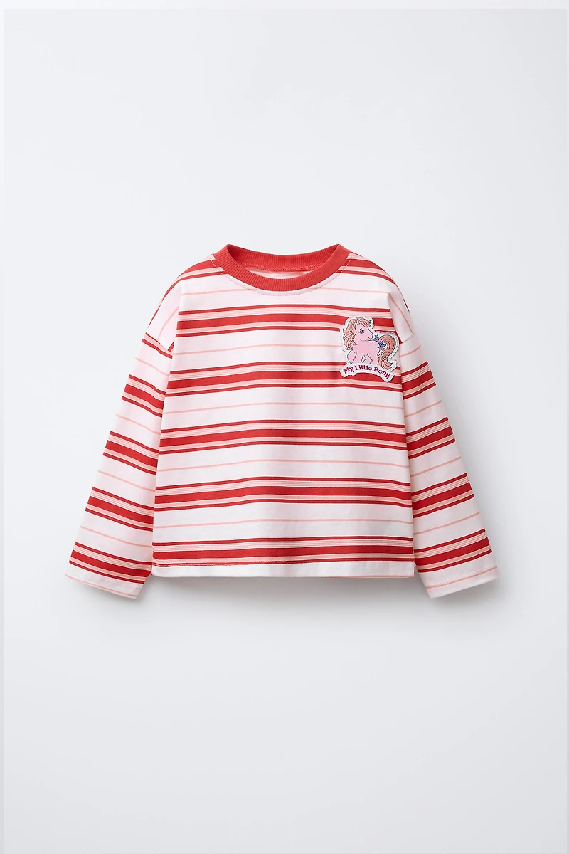 Round neck long sleeve T-shirt. Striped print and MY LITTLE PONY® patch appliqué on chest.