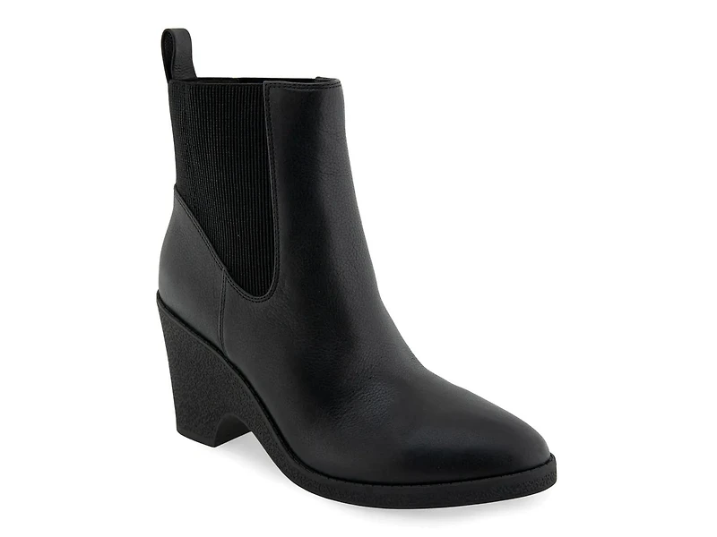 Stylishly transit from day to night with the Mylo wedge bootie from Aerosoles. Dual gore panels ensure a comfortable fit wearing this leather bootie, elevated by a sculpted wedge. Its Ortholite foam insole and diamond flex sole offer the comfort and support you need.