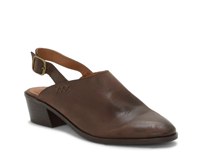 The Lucky Brand Mylody mule is a fusion of contemporary flair and timeless elegance. Crafted with leather upper for a premium touch, this slingback mule is fashioned with an almond toe and stacked block heel to elevate the visual appeal.