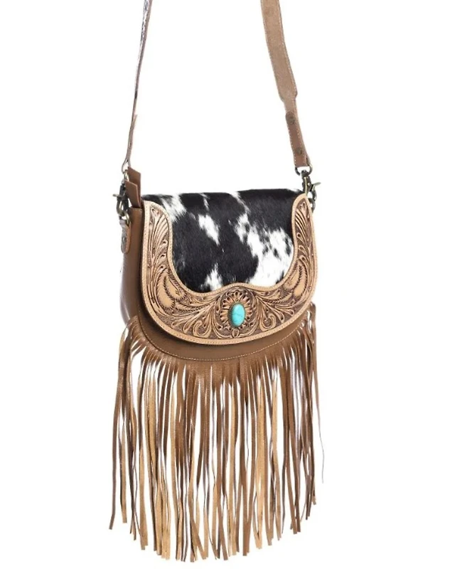 Myra Bag Women's Westward Tasseled Leather Hair-On Crossbody Bag