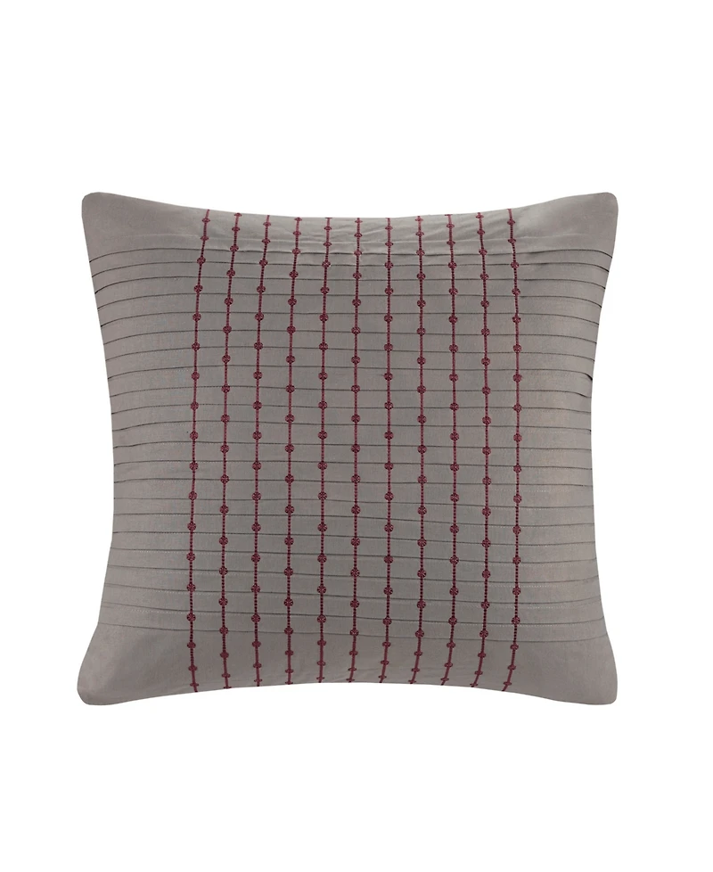 Create an oasis out of your space with the Natori Cherry Blossom Bedding Collection. This elegant euro sham features a 200 thread count cotton sateen face with dark grey ground and pleating details. Red embroidery runs perpendicular to the pleating for a small pop of color for added dimension.