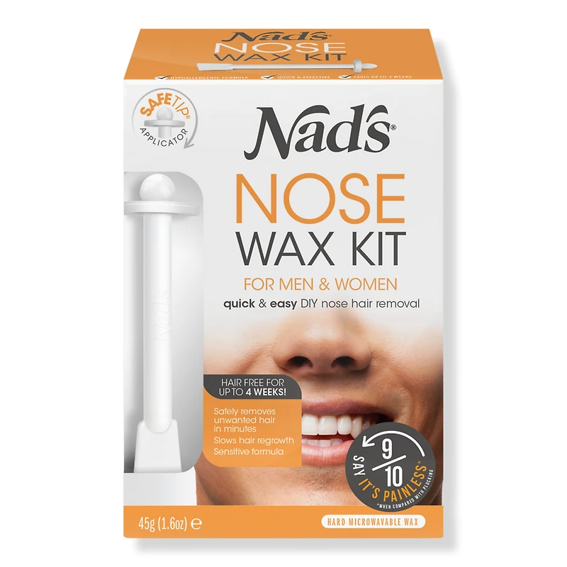 NOSE WAX KIT FOR MEN WOMEN 0OZ. Benefits: Removes visible nose hairs. Quick & easy to use, removes hair in minutes. Helps to slow hair re-growth. Sensitive, hypoallergenic formula. SafeTip Applicator protects inner nasal cavity. Can also be used to smooth the nose surface & removing middle brow hair. Cruelty-free. Features: Hair Free for up to 6 weeks. 10/10 say process is less painful than plucking. 10/10 were satisfied with product results. 10/10 say product is quick and easy to use. 95% say this process is the best way to remove nose hair. Includes: Nose Wax Pod (1.6 oz). SafeTip Applicators (4 ct). Wooden Spatulas (2 ct). Post-Wax Calming Oil Wipes (2 ct). Facial Hair Protectors (2 ct). Instruction Booklet.