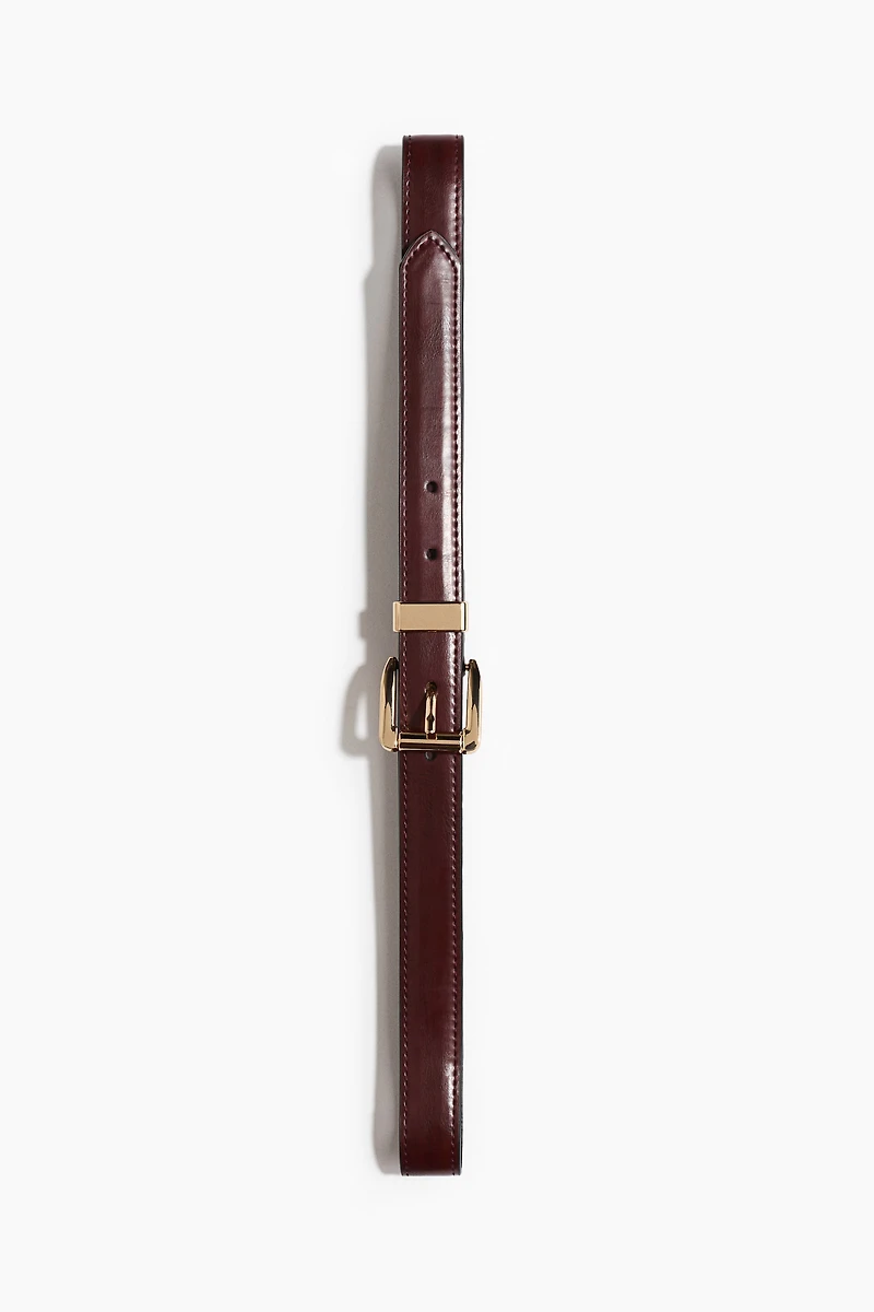 Narrow belt with a polished metal buckle.