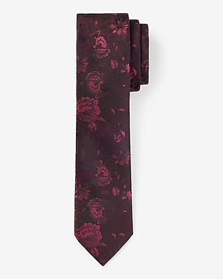 Narrow Burgundy Floral Print Tie in Bloomington, MN