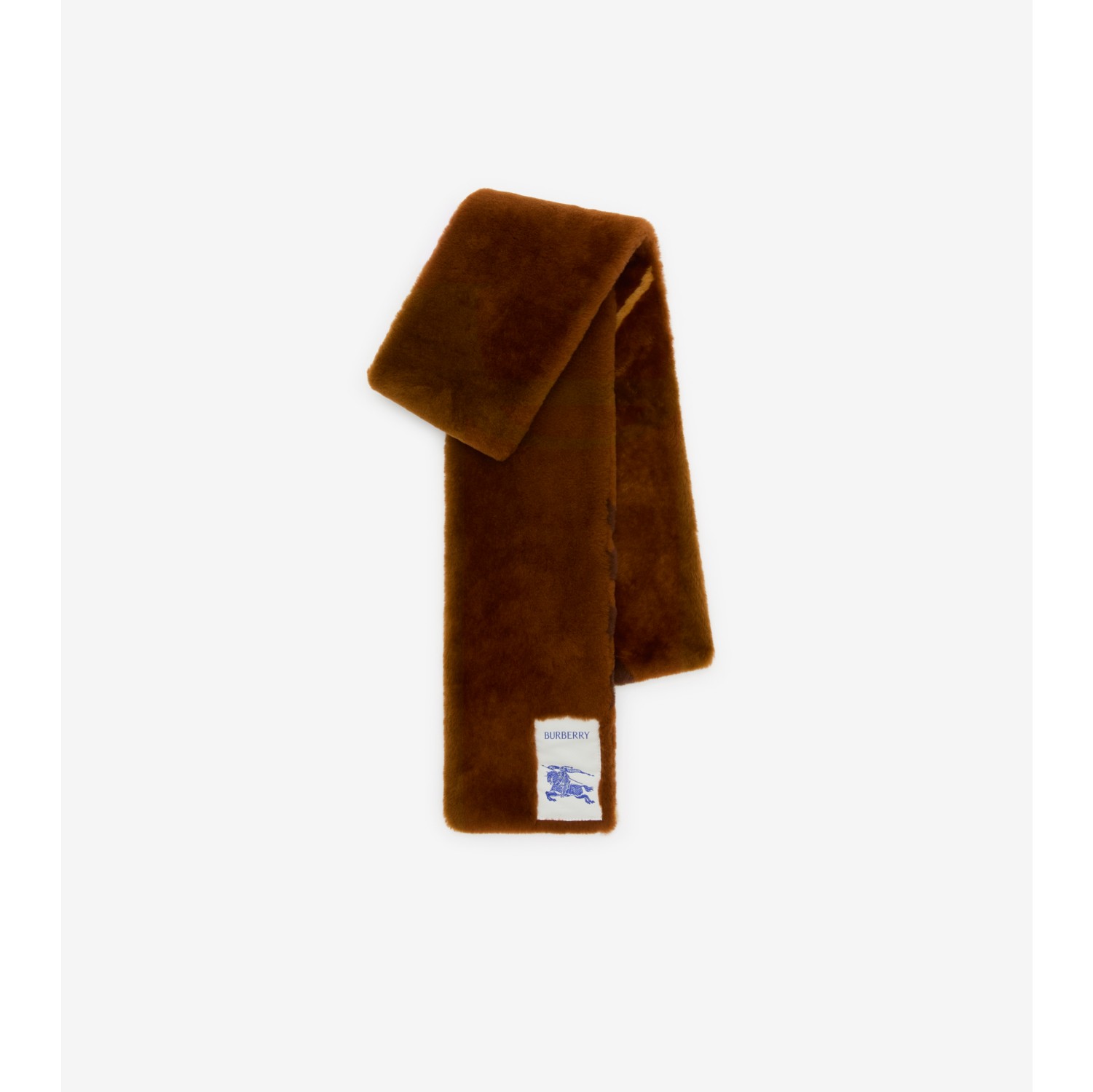 A cosy scarf crafted in Italy from soft shearling. Cut narrower than our signature scarves, the style features our Equestrian Knight Design label and intarsia woven motifs that reference the enduring Burberry Check. Rectangular Equestrian Knight Design label