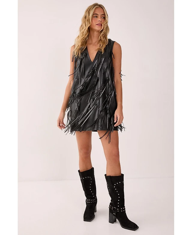 Nasty Gal Women's Faux Leather Tassel Plunge Mini Dress
