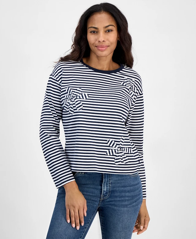 Nautica Jeans Women's Applique-Detail Striped Long-Sleeve Cotton Top