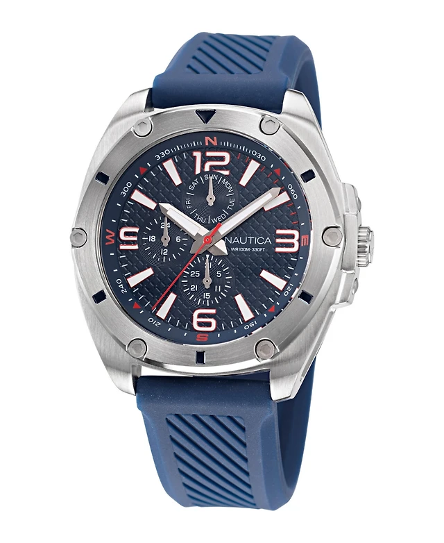 Nautica Men's Blue Silicone Strap Watch 47.5mm
