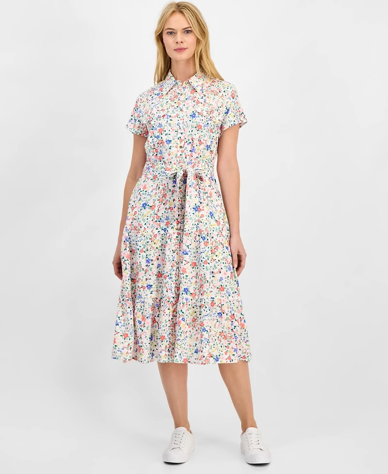 Nautica Women's Belagio Floral Belted Shirt Dress