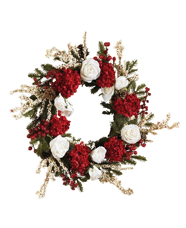 Nearly Natural 24" Hydrangea w/ White Roses Wreath