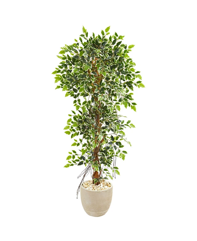 Nearly Natural 63" Elegant Ficus Artificial Tree in Sandstone Planter