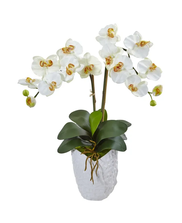 Nearly Natural Double Phalaenopsis Orchid Artificial Arrangement in White Ceramic Vase