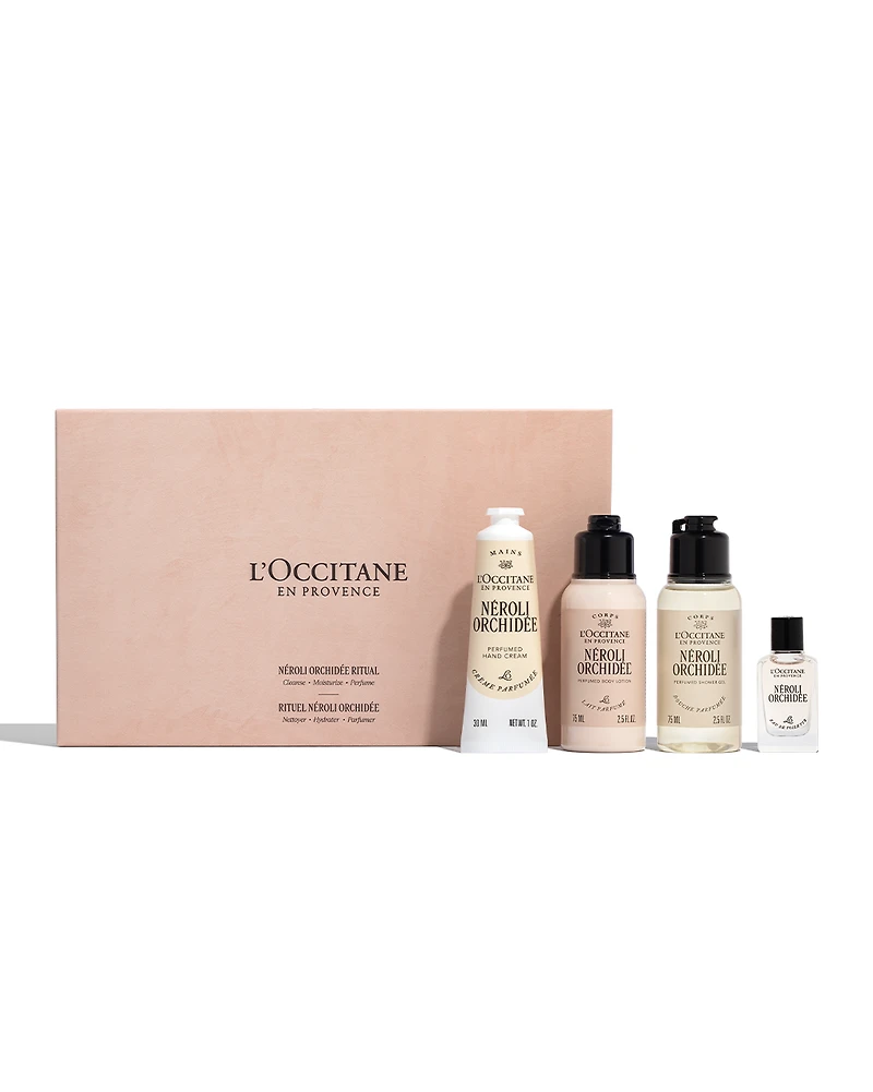 Ignite the senses with delicately floral-scented body care. Set comes preassembled in L'OCCITANE gift box and includes: Néroli Orchidée Eau de Toilette 7.5ml/ 0.25 fl oz: Enchanting citrus & florals harmoniously combined, evoking notes of lemon, a heart of neroli and a base of vanilla. Néroli Orchidée Perfumed Shower Gel 75ml/ 2.5 fl oz: surround yourself in the aroma of effervescent neroli as you cleanse with this gentle-foaming shower gel Néroli Orchidée Perfumed Body Lotion 75ml/ 2.5 fl oz: Take in the effervescent aroma of neroli as you moisturize and soften skin with an infusion of shea butter in this luxurious body lotion. Néroli Orchidée Perfumed Hand Cream 30ml/ Net wt 1 oz: Enriched with shea butter, this hand cream moisturizes & envelops the hands in a timeless feminine fragrance