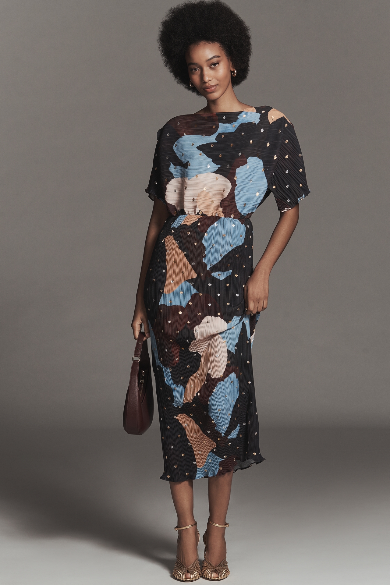 Never Fully Dressed Short=Sleeve Boat-Neck Midi Dress