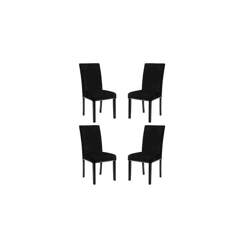 Introducing the New Classic Furniture Celeste Dining Chair – a set of four chairs that seamlessly blend comfort with contemporary elegance. Crafted with solid Rubberwood legs, these chairs boast quality construction, ensuring a strong and stable seating solution for your dining space. The 100% polyester royal blue velvet upholstery covers sumptuous memory foam cushions, offering both softness and durability for an easy-care, luxurious seat. The espresso legs, coupled with glimmering silver nailhead trim, add a touch of modern glamour to the plush velvet seating. Setting up these chairs is a breeze with the included easy-to-follow assembly instructions. Elevate your dining experience with the Celeste Dining Chair – where quality, comfort, and style converge effortlessly.