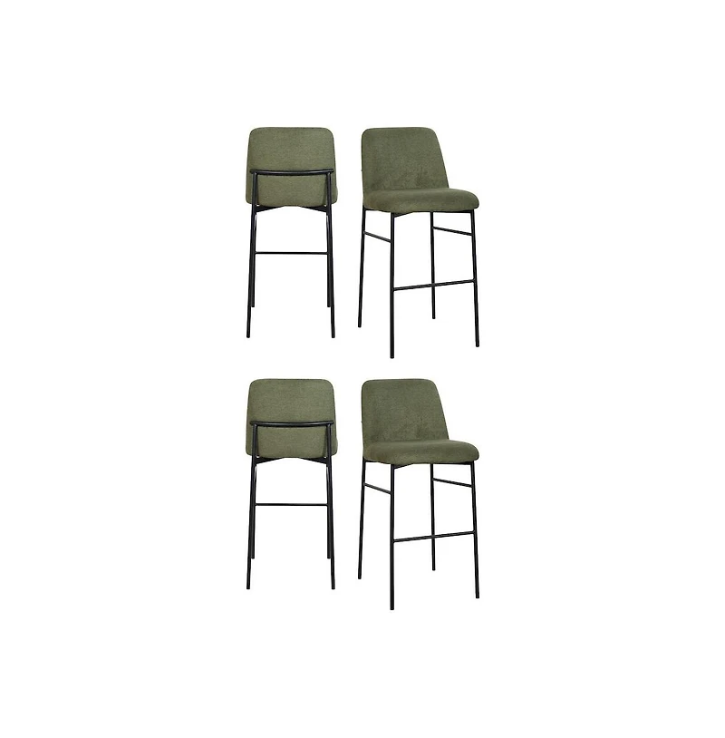 The Erik Bar Chair set offers a perfect combination of modern comfort and sleek design, ideal for any contemporary space. Each set includes four bar chairs with fully upholstered, elegantly curved seats and backs, delivering both a stylish flair and exceptional comfort. The rich green fabric, made from 100% polyester, provides a soft and cozy seating experience while being easy to maintain, making it practical for everyday use. The sturdy black iron tube legs ensure long-lasting stability, resisting bending or breaking, while their sleek form creates a striking contrast with the green upholstery for a refined, modern aesthetic. With its balance of comfort, durability, and style, the Erik Bar Chair is an excellent addition to any bar or kitchen setting.