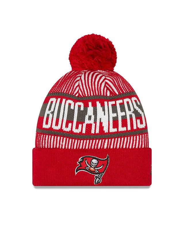 New Era Big Boys and Girls Red Tampa Bay Buccaneers Striped Cuffed with Pom Knit Hat