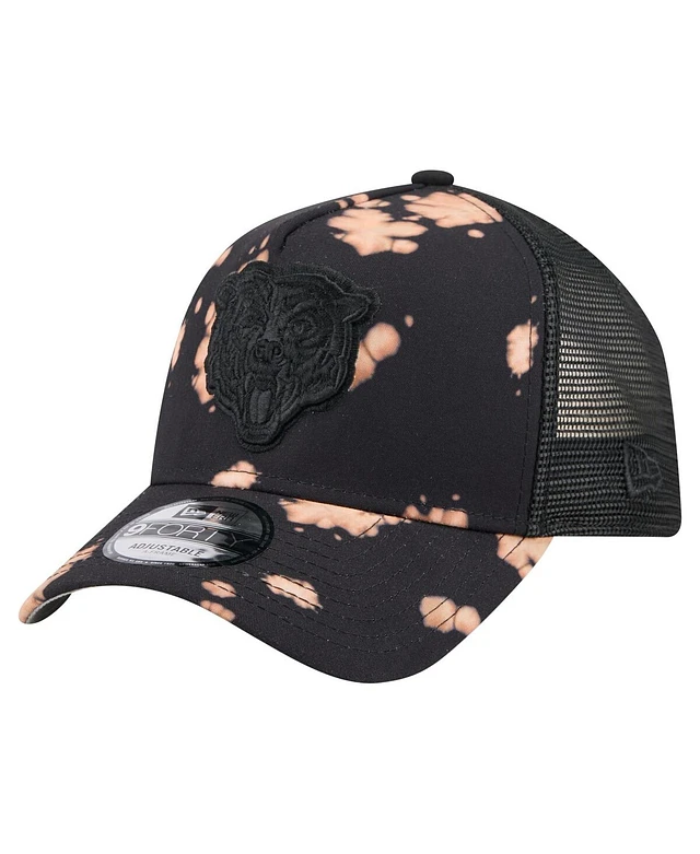 New Era Men's Black Chicago Bears Bleached A-Frame 9FORTY Trucker Adjustable Hat