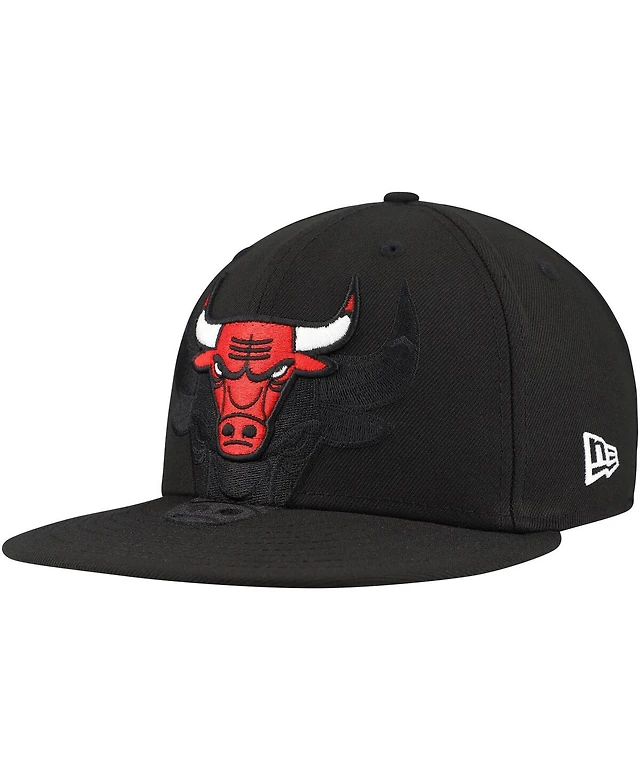 New Era Men's Black Chicago Bulls Blackout Shadow Logo 59FIFTY Fitted Hat