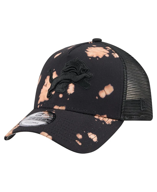 New Era Men's Black Detroit Lions Bleached A-Frame 9FORTY Trucker Adjustable Hat
