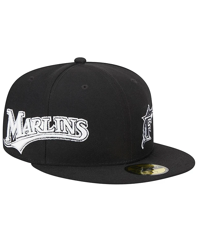 Men's New Era Miami Marlins Black and White Low Profile 59FIFTY Fitted Hat