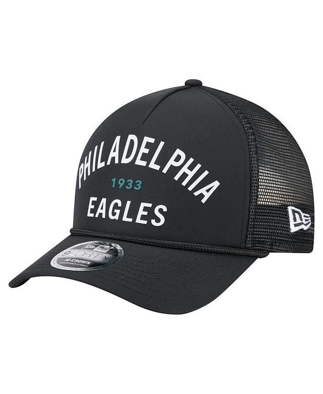 New Era Men's Black Philadelphia Eagles Active Minimalist M-Crown A-Frame 9FORTY Adjustable Hat