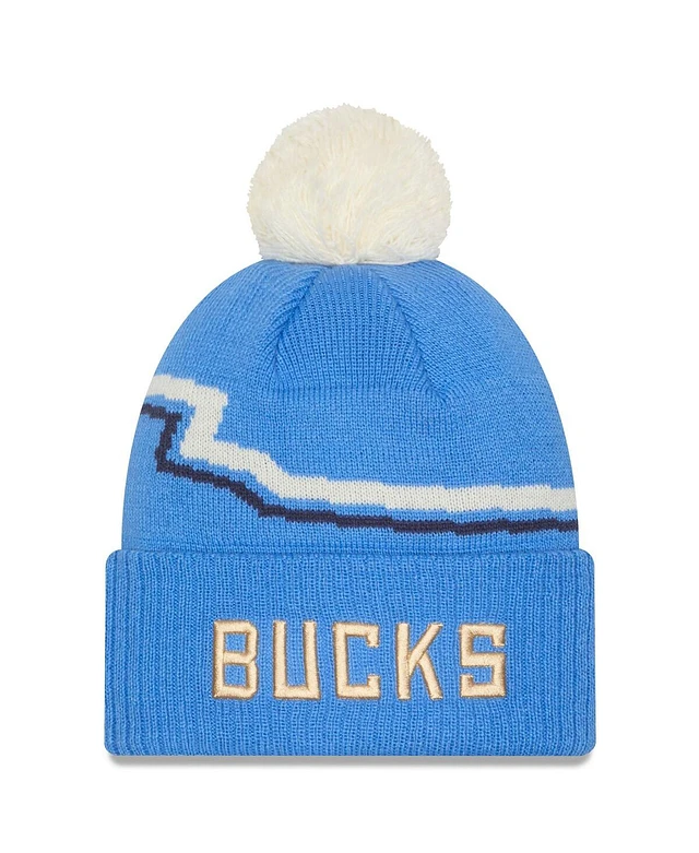 New Era Men's Blue Milwaukee Bucks 2024/25 City Edition Cuffed Knit Hat with Pom