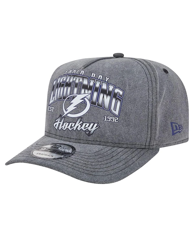 New Era Men's Charcoal Tampa Bay Lightning Throwback Washed A-Frame Pre-Curved 9FIFTY Snapback Hat