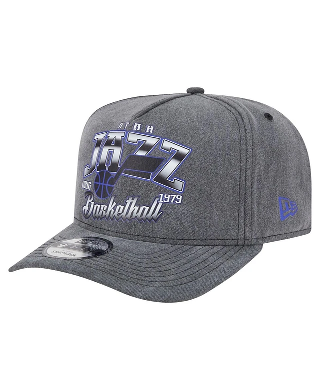 New Era Men's Charcoal Utah Jazz Throwback Washed Pre-Curved 9FIFTY Snapback Hat
