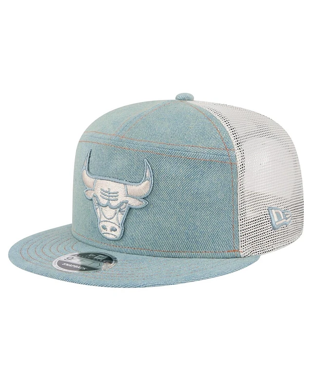 New Era Men's Chicago Bulls Adventure Denim Split Panel 9FIFTY Snapback Trucker Hat